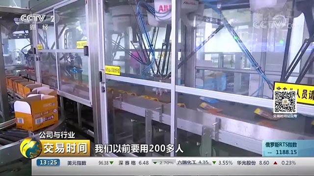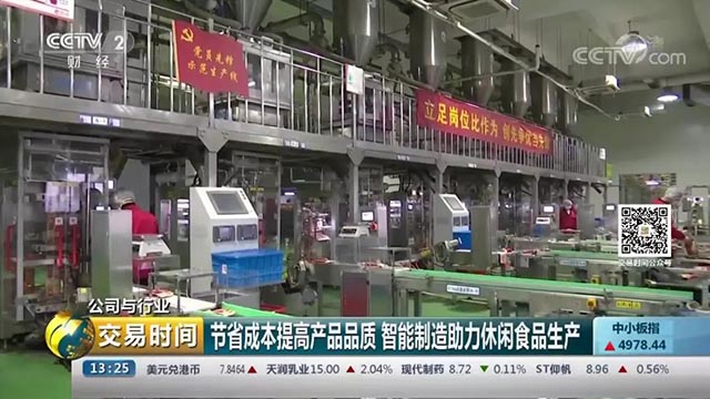 这条生产线是企业自主开发,瓜子全自动流水线,自动包装、运输、装箱一体化,工艺控制实现全流程自动控制以及远程监控。这样,不仅让效率得到提升,让企业的生产标准也得到精准的执行。像这样的生产线,以前企业需要用200多人,现在只需要20人。一年节约人工成本超过1000万元以上。