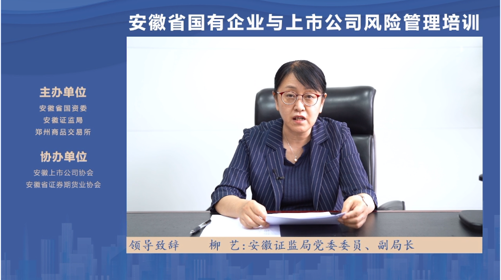 9月21日,在安徽省国资委、安徽证监局的指导下,我会联合安徽省证券期货业协会共同协办的“安徽省国有企业与上市公司风险管理培训”在云端举行,包括80余家上市公司在内的1.4万余人次在线上参与了本次活动。安徽证监局副局长柳艺出席活动并致辞。